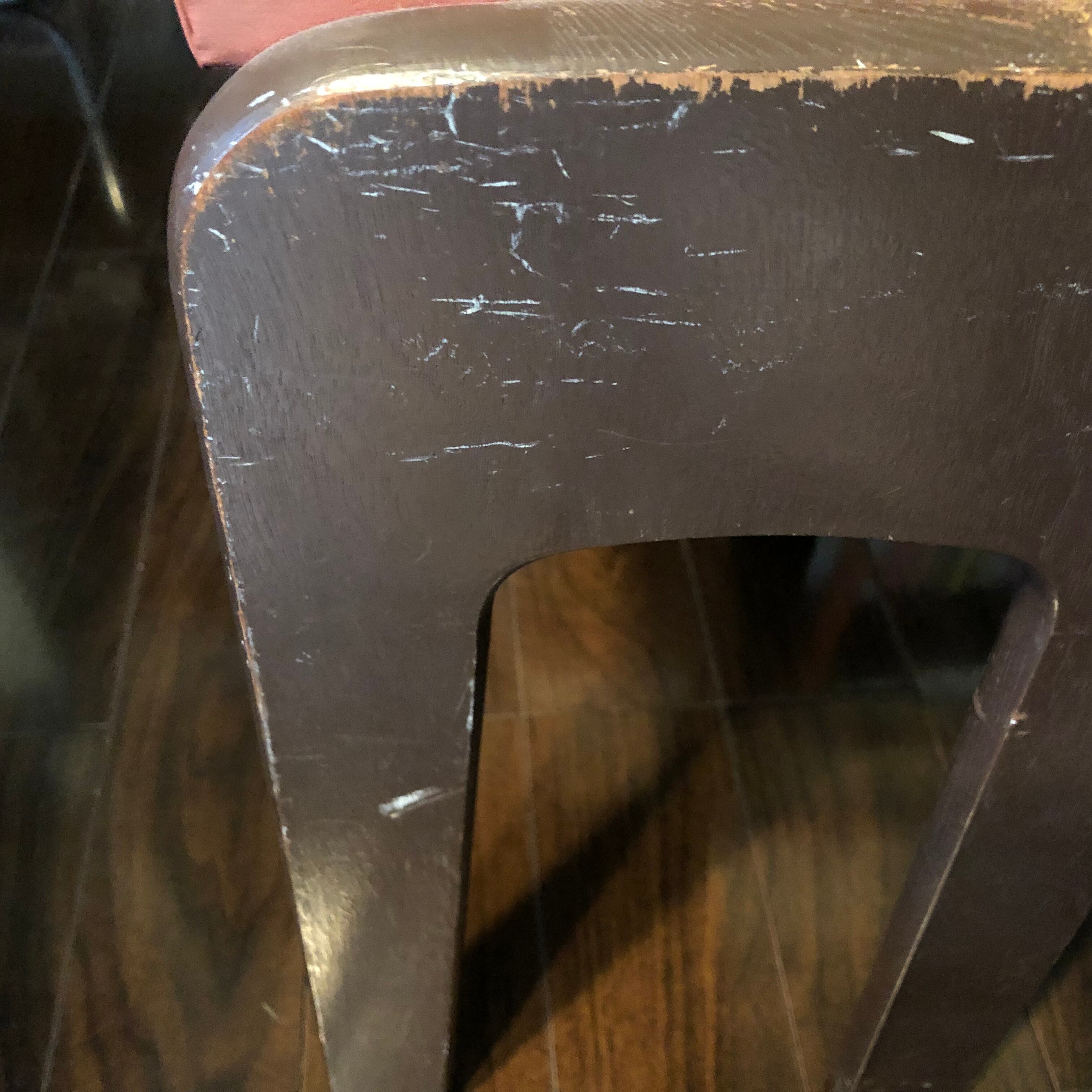 ガタつきなどはほとんどありませんが、座面の傷みや脚部分のちいさなキズ(多数)等はご理解ください。