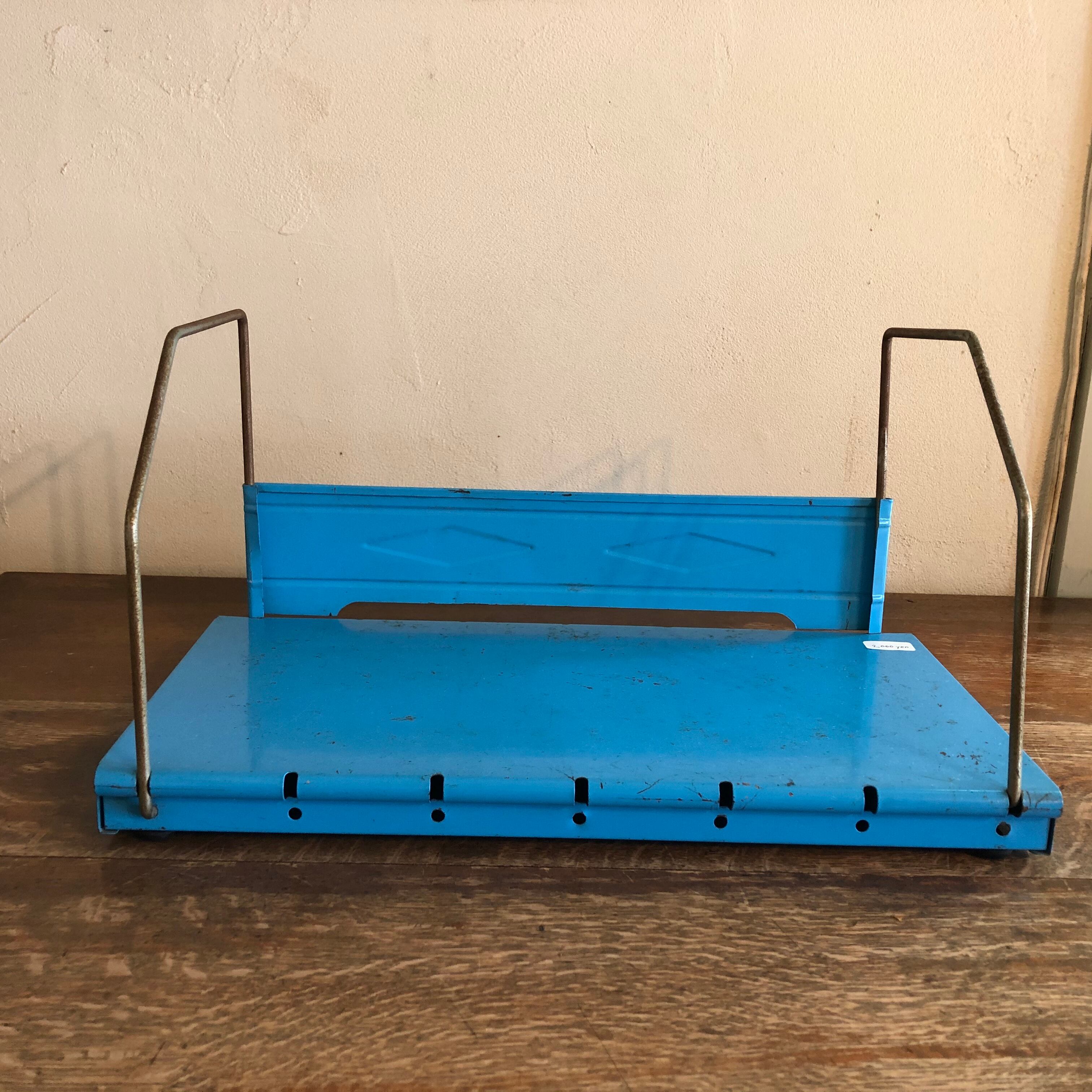 レトロなブルーがかわいいスチール製の本立て。