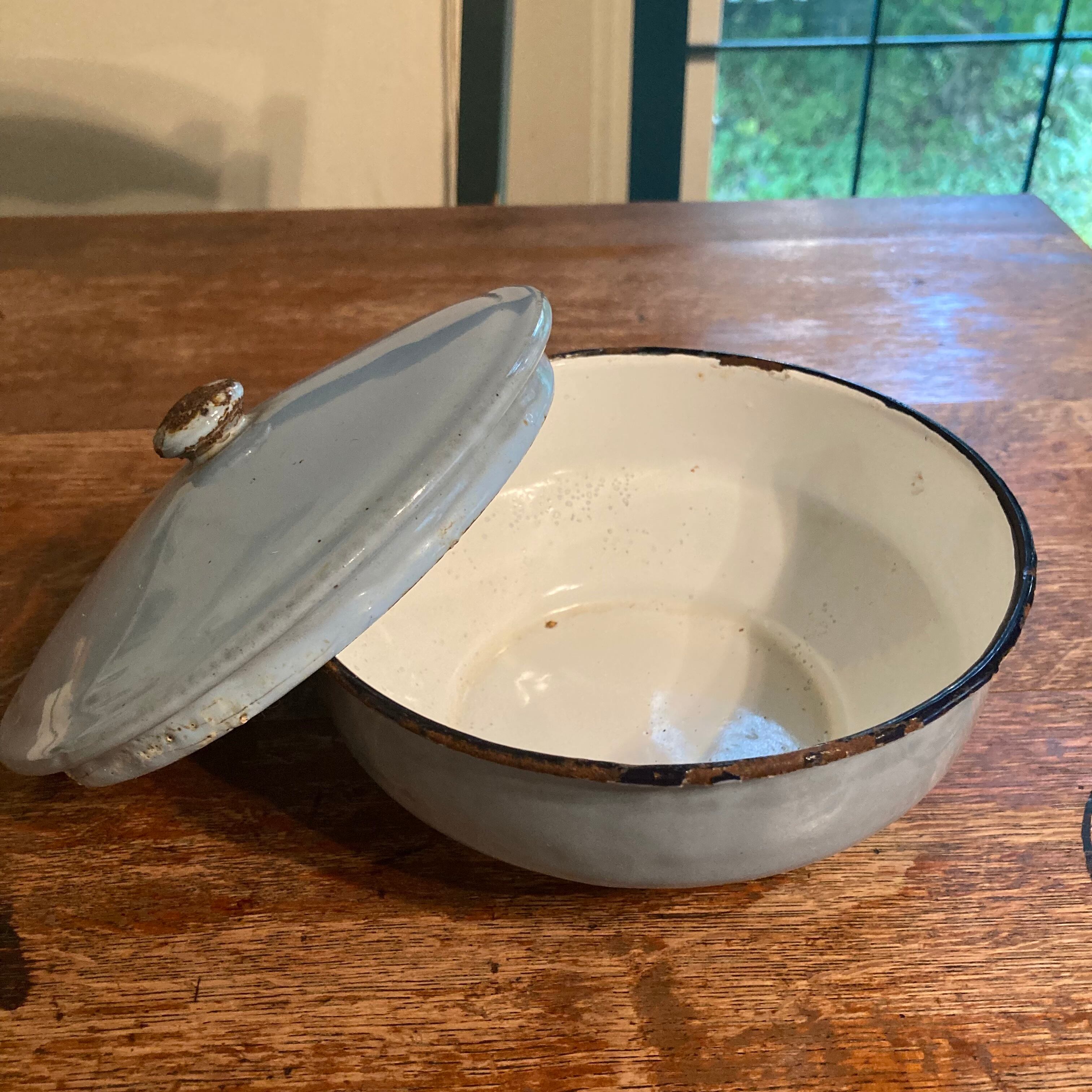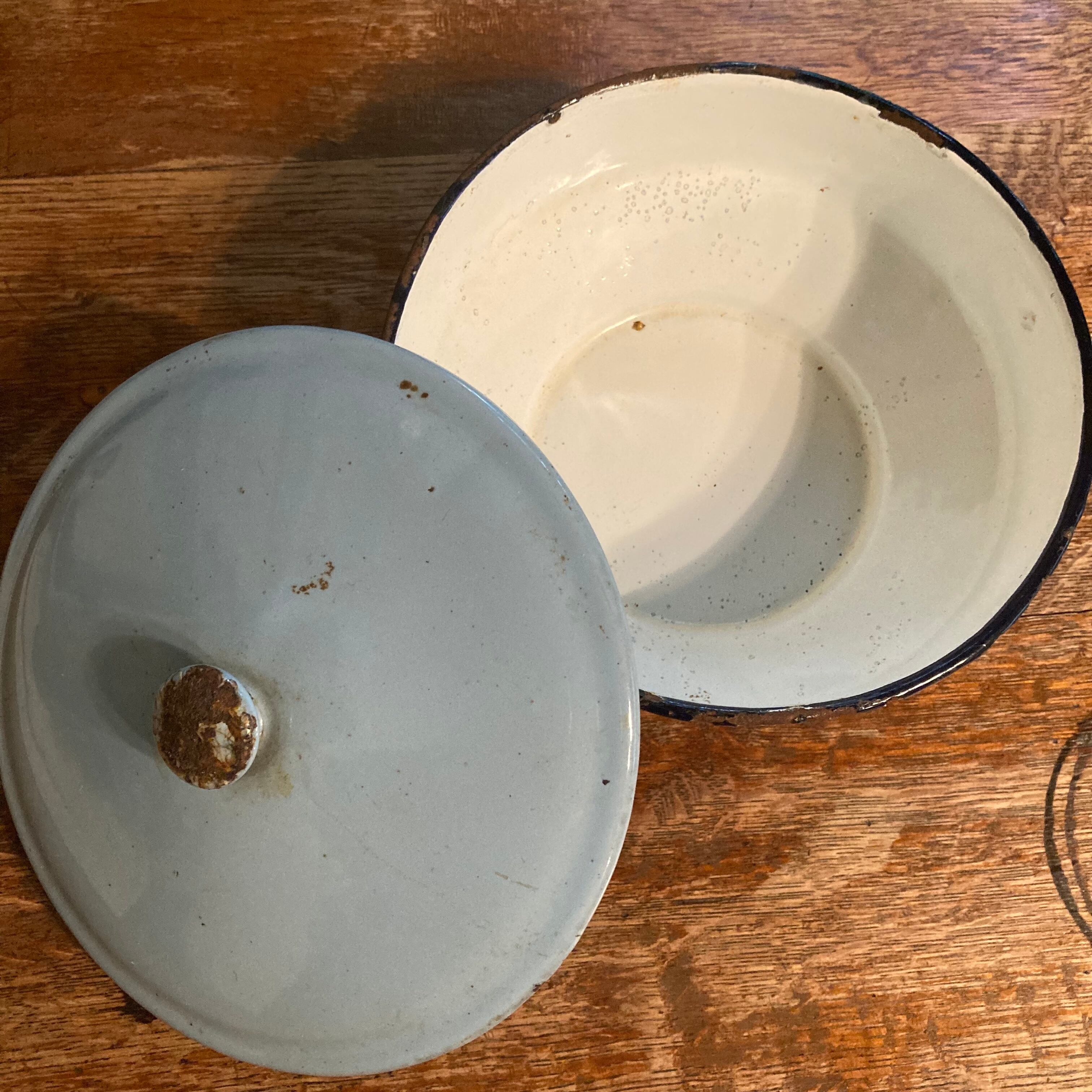 昭和レトロ 蓋付きホーロー物入れ 水色